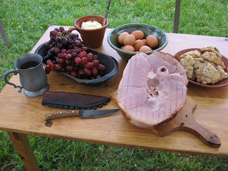 How bad can a day be that starts off like this? Ham, eggs, grapes, scones and butter. Oh, and tea. We portray a British unit that's heavy on Officers. We've got plenty of tea!