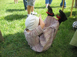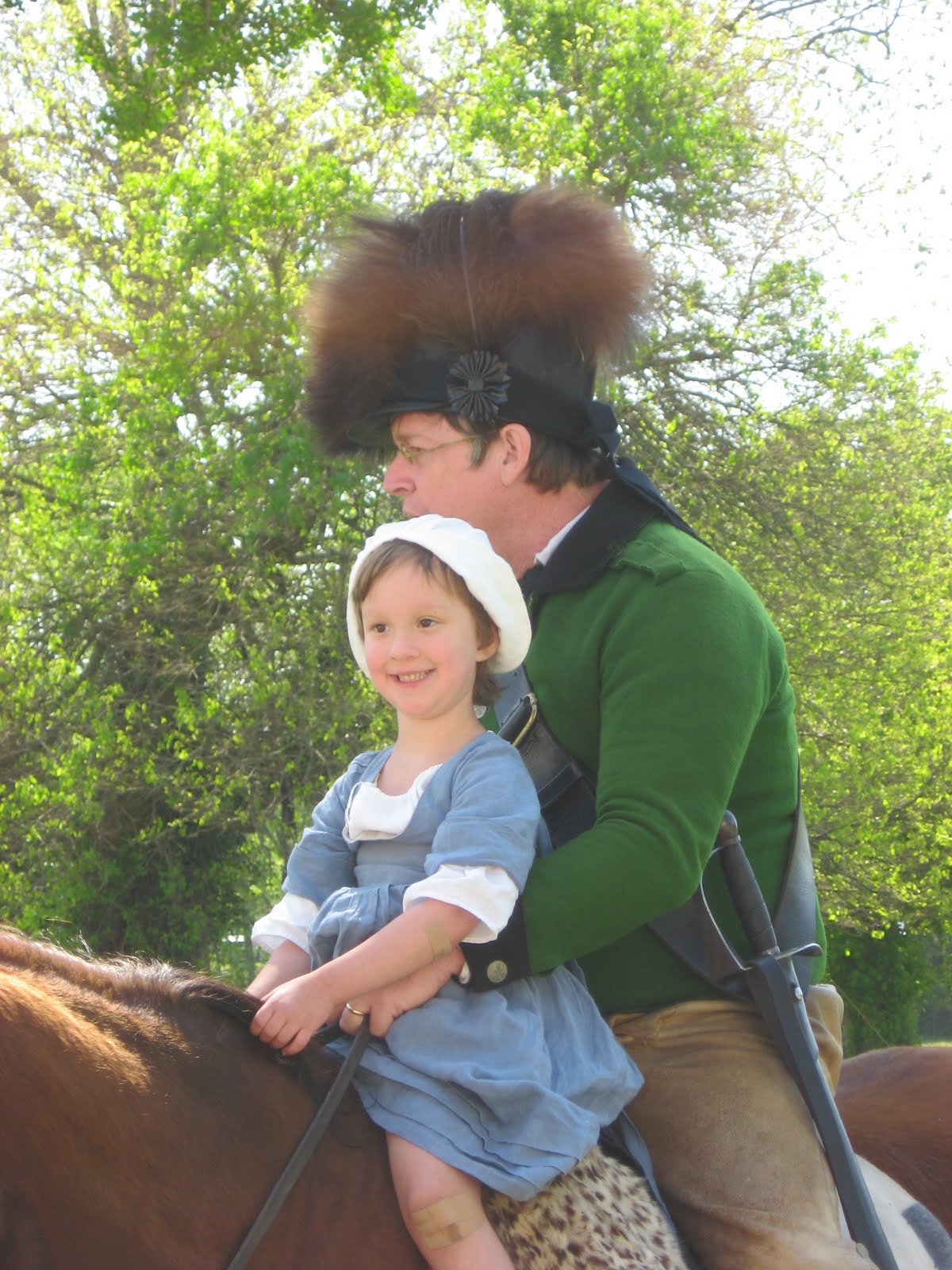 But best of all, SD got to ride Webster again this year! She's got a great natural seat, and I can't wait until she goes through a horse phase so I've got an excuse to start riding again. I also got to ride Webster, and it was the highlight of my weekend. Granted, it's been over 15 years since I've been riding on a regular basis and I'm middle-aged, and my knees have never been good, so I needed a good deal of assistance to get into the saddle (I was also in petticoats and a gown, so I'll use that as an excuse as well, thank-you-very-much), but oh! I've missed it. We went for a nice little trot down the field and back only to find about a dozen AIT students waiting for their turn. "Ma'am, do you need help getting down?"