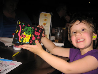 Then there’s Sweet Daughter’s first grown-up party at the Gunnie Prom in Charlotte last Saturday. She was told what to expect, and what was expected of her, and I brought a kid-friendly-yet-appropriate activity for her so she wouldn’t find um, annoying ways to entertain herself. (Well, other than when she decided she needed to deliver something to Breda at the end of the row of tables, and decided the quickest way to accomplish this was to run the gauntlet under the row of tables. It was like she dissapeared into thin air. Good problem solving skills at least.) And when we got to the restaurant and she started holding her hands over her ears because it was too loud, I managed to find some earplugs in my purse for her. All moms carry those, right?