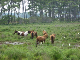 Sweet Daughter and I had the chance to meet up with some family members last week in Chincoteague. My sisters had rented a house, and we went up for some R&R for a couple of days. The house was right on the edges (several edges, actually) of wetland, and the views were gorgeous. The mosquitoes were the size of small hummingbirds, and you couldn’t open your car door without the little buggers swarming in to greet you. We even brought a bunch home with us – apparently we were the transport for some sort of insect foreign exchange program.