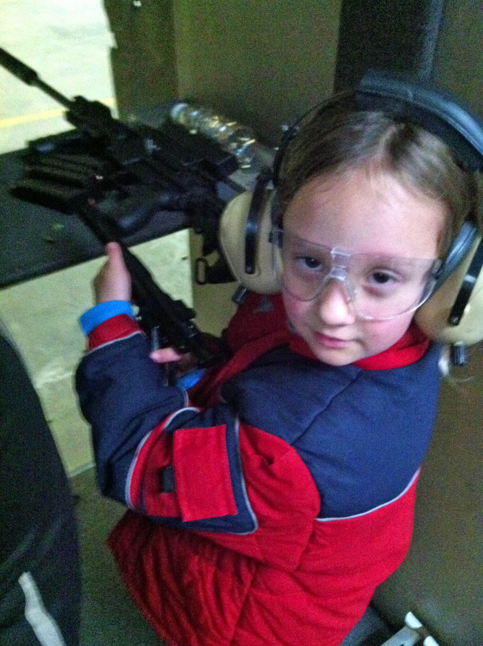We went in, got a lane and geared up. The Miller unpacked his arsenal of .22’s he’d brought for SD as she’d been dying to shoot a “real”pistol. We started with her Cricket rifle as it was familiar, but she really wanted to shoot a pistol. The Miller gave her some excellent advice, and she went to town.